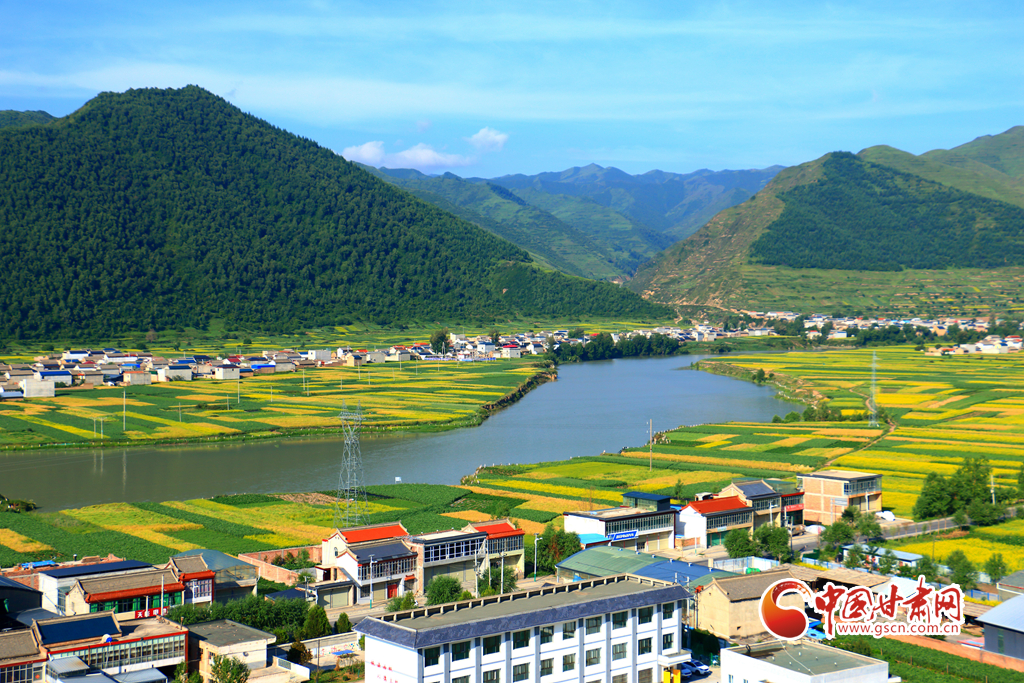 盛夏時節(jié),岷縣十里鎮(zhèn)洮河兩岸的油菜花競相綻放,與民居、山川、林地、豐收在望的各類中藥材相映,構成了一幅生態(tài)宜居的田園畫卷,美不勝收。