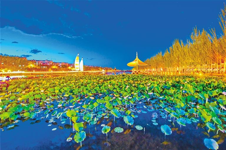 敦煌大漠荷花盛開。奔流新聞·蘭州晨報通訊員 王斌銀 攝