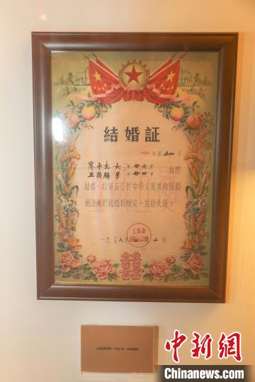 圖為博物館展出的建國初期的結(jié)婚證?!⒘?nbsp;攝