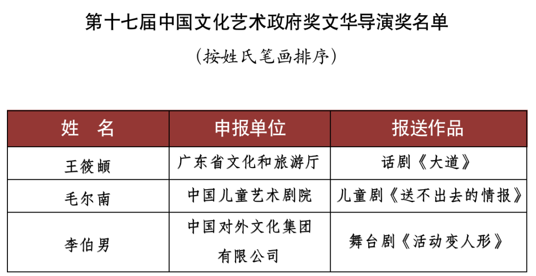 9月15日,文化和旅游部對外公布了《第十七屆文華獎獲獎名單》。舞劇《五星出東方》(北京市文化和旅游局選送)、話劇《塞罕長歌》(河北省文化和旅游廳選送)、舞蹈詩劇《只此青綠》--舞繪《千里江山圖》(中國東方演藝集團有限公司選送)等15個作品獲得第十七屆中國文化藝術(shù)政府獎文華大獎。