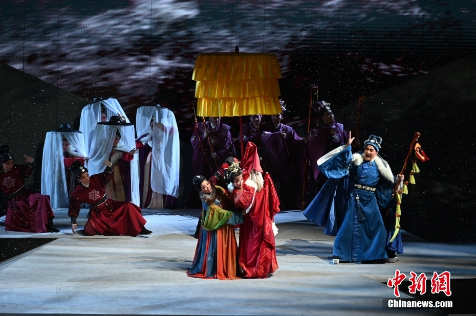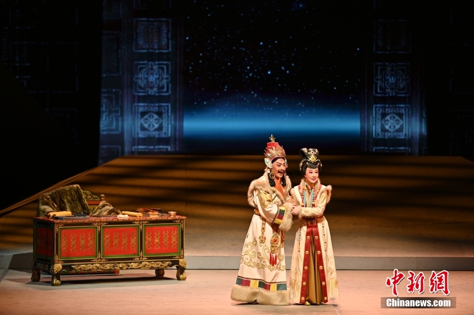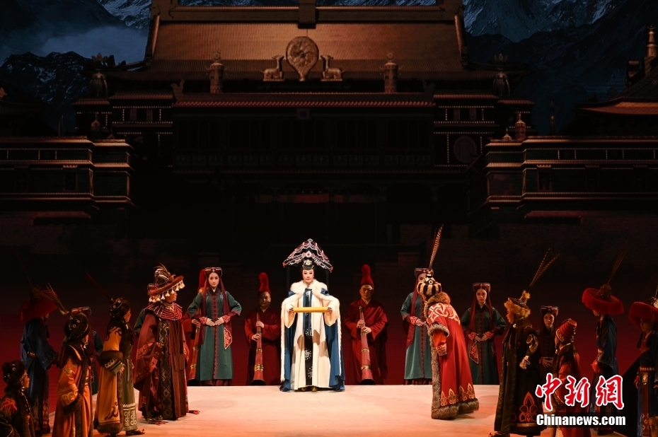 10月11日晚,大型新編歷史粵劇《文成公主》在廣東廣州大劇院首演。該劇以文成公主和親進藏的歷史事件為依據(jù)創(chuàng)作,講述了文成公主堅守吐蕃四十年,促進了吐蕃經(jīng)濟、文化的發(fā)展,加強了漢藏人民的友好關(guān)系。中新社記者 陳楚紅 攝