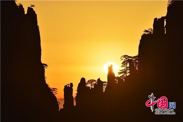 原標(biāo)題:安徽黃山:日出巧石神奇變幻 畫(huà)面猶如仙境