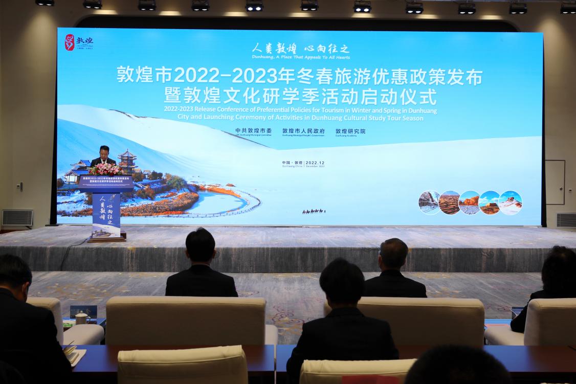 從12月15日敦煌市舉行的2022-2023年冬春旅游優(yōu)惠政策發(fā)布暨敦煌文化研學(xué)季活動啟動儀式上了解到,甘肅酒泉敦煌市制定出臺多項(xiàng)冬春旅游優(yōu)惠政策措施,吸引游客、拉動消費(fèi),促進(jìn)文旅市場回暖復(fù)蘇。