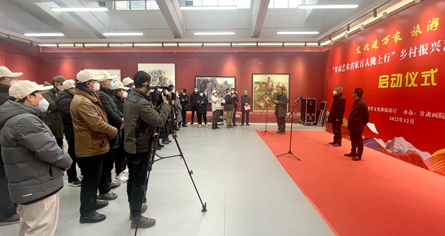 12月17日上午,“甘肅藝術(shù)名家百人隴上行”鄉(xiāng)村振興藝術(shù)創(chuàng)作工程采風活動在甘肅畫院正式啟動,來自全省各地的藝術(shù)家從蘭州黃河之濱,奔赴甘南、隴南兩地重點旅游示范村開展創(chuàng)作采風活動。省委宣傳部副部長、省文旅廳黨組書記何效祖出席啟動儀式并講話。省文化和旅游廳黨組成員、副廳長萬學(xué)科主持啟動儀式,甘肅畫院院長王萬成,甘肅文旅集團黨委副書記、工會主席王寧等出席啟動儀式。