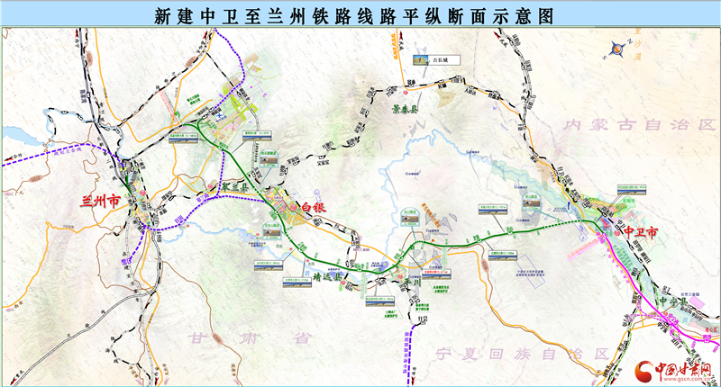 據(jù)了解,銀蘭高鐵中蘭段經(jīng)白銀市靖遠(yuǎn)縣北灘鎮(zhèn)進(jìn)入甘肅境內(nèi),向南途經(jīng)白銀市平川區(qū)、白銀區(qū),蘭州市皋蘭縣、蘭州新區(qū)及永登縣,新建北灘站、平川西站、靖遠(yuǎn)北站、白銀南站、秦王川站5座車(chē)站。線路向西連接中川城際鐵路進(jìn)入蘭州西客站,向北直達(dá)中川機(jī)場(chǎng)并連通蘭張三四線,可經(jīng)由武威、金昌,在張掖與蘭新高鐵連通,向東直通銀川,可轉(zhuǎn)向慶陽(yáng)至西安,構(gòu)建了蘭州到慶陽(yáng)、平?jīng)龅鹊貐^(qū)的高鐵新通道。