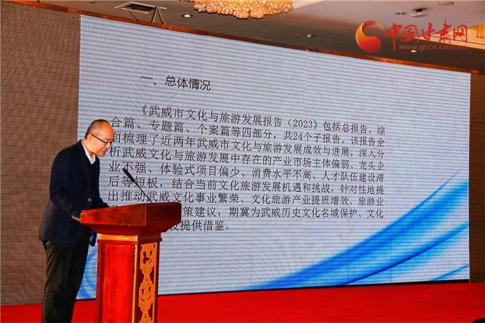 中國甘肅網(wǎng)1月8日訊(本網(wǎng)記者 張慧雅 何星丑 趙志富)1月8日,在甘肅系列藍(lán)皮書發(fā)布現(xiàn)場,由甘肅省社會科學(xué)院與武威市涼州文化研究院合作編寫了《武威市文化與旅游發(fā)展報(bào)告(2023)》同期發(fā)布。藍(lán)皮書建言,武威市要深入挖掘涼州文化內(nèi)涵,提煉其精神標(biāo)識和文化精髓,促進(jìn)涼州文化創(chuàng)造性轉(zhuǎn)化、創(chuàng)新性發(fā)展,從而促進(jìn)武威文化旅游產(chǎn)業(yè)高質(zhì)量發(fā)展。
