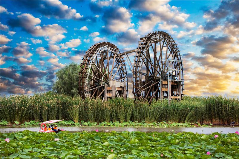 銀川市濕地(包含河流水域)面積531平方公里(80萬畝),占市域土地總面積7.65%,人均濕地面236平方米,是全國的6倍,市區(qū)濕地率達(dá)到10.65%,濕地保護(hù)率達(dá)到78.5%,2018年被評為我國首批“國際濕地城市”。鳴翠湖位于興慶區(qū)掌政鎮(zhèn),總規(guī)劃面積8840畝,是歷史上銀川“七十二連湖”重要組成部分,是中國西部地區(qū)和黃河流域首家國家濕地公園、“國內(nèi)首個立體生態(tài)荒漠化濕地成功修復(fù)力作”、國家水利風(fēng)景區(qū)、國家4A級旅游景區(qū),享有“中國最美濕地公園”“中國生態(tài)保護(hù)最佳濕地”等美譽。銀青公路穿湖而過,將其分為南北兩湖,其中:南湖為濕地生態(tài)保護(hù)核心區(qū)占地3845畝,只進(jìn)行濕地保護(hù)與恢復(fù)性建設(shè);北湖占地4995畝,進(jìn)行濕地景觀建設(shè)和濕地生態(tài)旅游項目的開發(fā)經(jīng)營。鳴翠湖湖泊面積占湖區(qū)面積的80%,景區(qū)生物多樣性富集,有維管植物109種、水生浮游植物69種、鳥類97種。湖光瀲滟、蘆葦蕩漾、楊柳依依、水車吱吱、魚翔淺底、百鳥鳴翠,遠(yuǎn)望水鷺雙飛起,近看風(fēng)荷一向翻;接天蓮葉無窮碧,映日荷花別樣紅,在我國西北干旱地區(qū)和黃河沖積平原區(qū)域具有典型性和代表性。