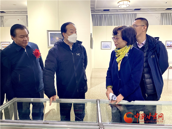 趙勇先后觀看“同心筑夢”“賡續(xù)文脈”“吉祥家園”三個主題展區(qū)的340幅書畫攝影作品和158冊精品古籍圖書,對甘肅近年來民族古籍整理工作給予了充分肯定。