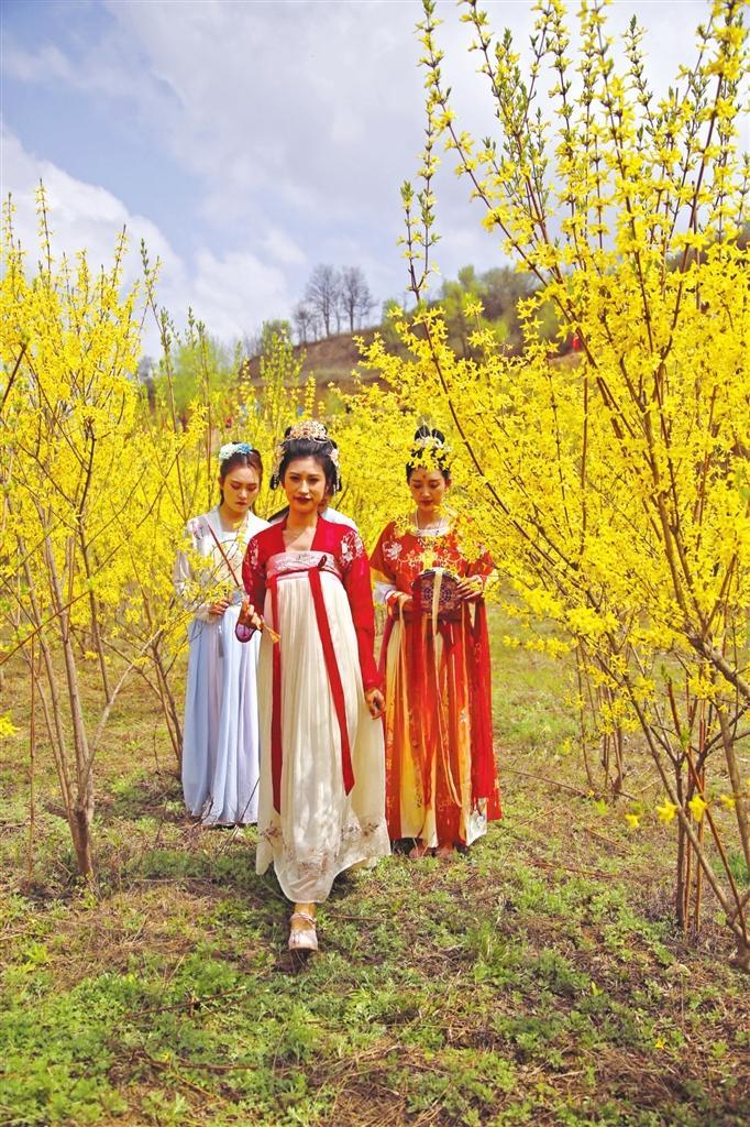 萬畝連翹花開 秦嶺古鎮(zhèn)“流金”