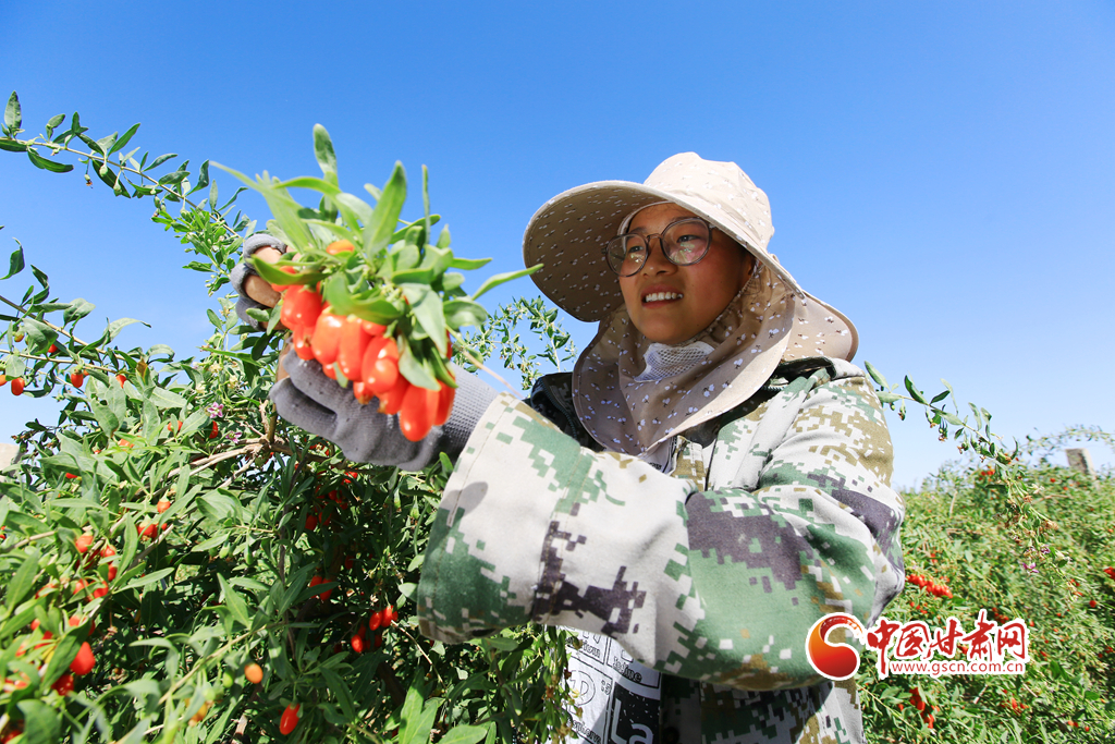 近日,嘉峪關(guān)市新城鎮(zhèn)一公司的1.89萬(wàn)畝頭茬枸杞迎來(lái)采收季,枸杞種植戶搶抓晴好天氣采摘、拉運(yùn)、晾曬枸杞,枸杞園內(nèi)外一派繁忙的豐收景象。