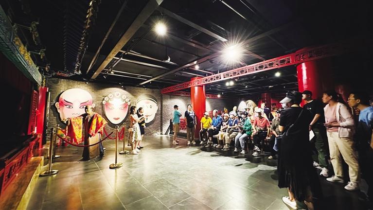 中國甘肅網9月5日訊 據(jù)蘭州日報報道(記者 安若璇 攝)今年暑期,伴隨著蘭州旅游的火爆“出圈”,在蘭的各個博物館也隨之成了“頂流”,人氣旺盛,一票難求,場館入口處參觀者隊伍蜿蜒逶迤,各個展廳內人頭攢動……面對洶涌的參觀人潮,甘肅省博物館、蘭州市博物館等也大膽創(chuàng)新,紛紛出實招出新招,通過“周一不閉館”、延長場館開放時間等方式,創(chuàng)新服務形式,提升服務水平,滿足老百姓的精神文化需求。圖為火爆的秦腔博物館。