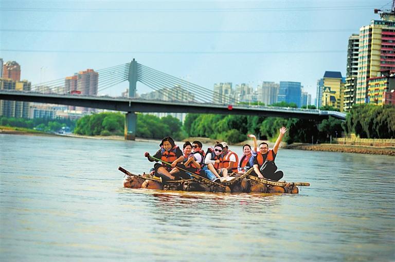 入秋以來,蘭州文旅市場持續(xù)火熱,不少游客前來旅游。9月14日,游客在黃河蘭州段乘著羊皮筏子漂流黃河,感受與母親河的“零距離”接觸。