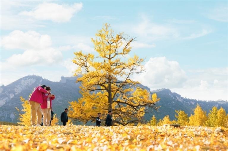 金秋時(shí)節(jié),走進(jìn)徽縣嘉陵鎮(zhèn)田河村,恍若走進(jìn)了金色的仙境。153棵古銀杏樹(shù)滿身金黃,一地落葉似“金色地毯”。銀杏樹(shù)下,品銀杏茶、吃銀杏果、享銀杏風(fēng)情,美不勝收,吸引眾多游客前來(lái)拍照打卡。如今,美麗風(fēng)景變身“美麗經(jīng)濟(jì)”,當(dāng)?shù)匾劳星赉y杏資源優(yōu)勢(shì),引進(jìn)“銀杏夢(mèng)谷”旅游項(xiàng)目,打造集旅游觀光、生態(tài)康養(yǎng)、休閑娛樂(lè)、農(nóng)特產(chǎn)品銷售為一體的美麗鄉(xiāng)村旅游示范點(diǎn),讓千年古樹(shù)煥發(fā)新的生機(jī)。本報(bào)記者 冉創(chuàng)昌 高瓊 攝