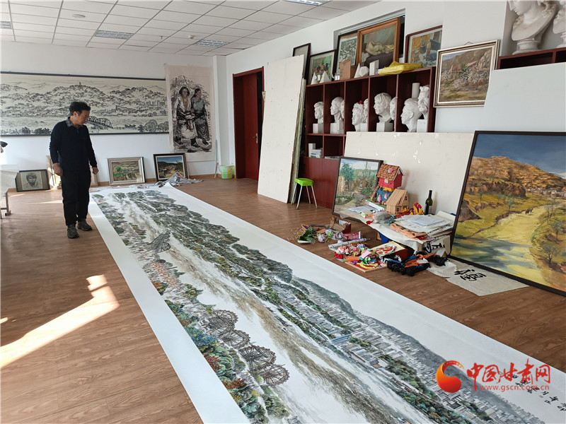 7年前,李建春曾經(jīng)在黑板上素描畫(huà)蘭州中山橋、白塔山走紅,在他的筆下蘭州就是一幅畫(huà)。這些年,李建春老師靜心創(chuàng)作,希望將蘭州的人文符號(hào)通過(guò)長(zhǎng)卷表達(dá)出來(lái)。