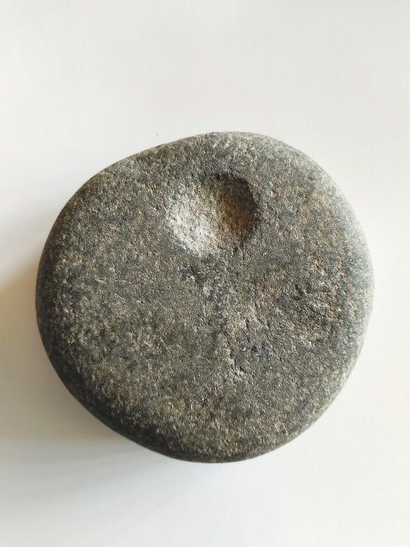 齊家文化的“盤(pán)狀石器”除“敲砸器”以外,還有一點(diǎn)比較特殊,其雙面分別琢制有日紋和月紋。目前所知,這類(lèi)“盤(pán)狀石器”只在齊家文化遺存中出現(xiàn),是齊家文化石器的特有器型,石質(zhì)大多為礫石、河礫石。這種齊家文化特有的琢紋盤(pán)狀石器,學(xué)界尚未有統(tǒng)一命名,通常所見(jiàn)為:“圓形見(jiàn)手窩敲砸器”“刻符石”“刻符石器”。民間俗稱為:“練功石”“日月石”“星月石器”等。