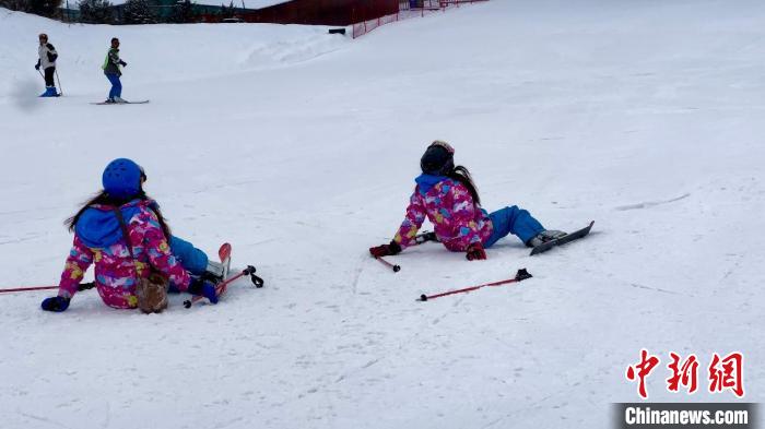 圖為滑雪教練協(xié)助臺胞青年進(jìn)行滑雪訓(xùn)練。王牧雨 攝