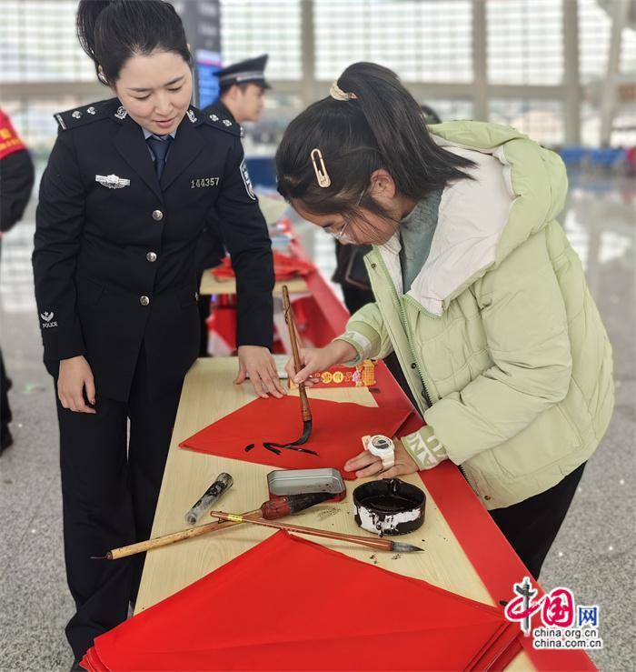 本次活動由莆田車站派出所牽頭組織,聯(lián)合中信銀行、莆田站共同開展。活動期間,民警與志愿者在莆田站甬廣場候車室為旅客發(fā)放高鐵安全宣傳單及春聯(lián),并由青年民警現(xiàn)場書寫春聯(lián)、福字送給來往旅客,將平安、溫馨傳遞給每一個人。