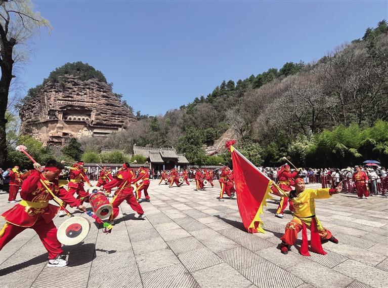 3月30日9時,天水伏羲廟前人潮涌動,熱鬧非凡,來自蘭州的太平鼓隊以精彩絕倫的表演拉開蘭州助力天水麻辣燙文旅推廣活動大幕。