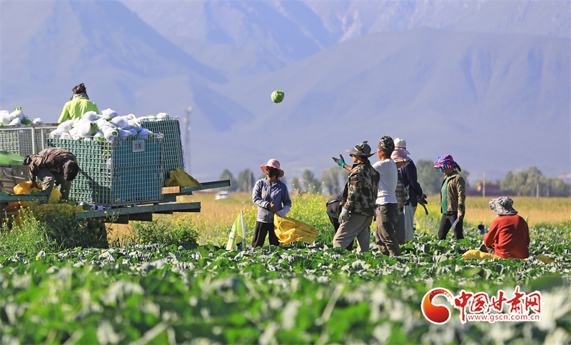 初秋,在民樂(lè)縣永固鎮(zhèn)八卦村高原夏菜種植基地,5000多畝娃娃菜、西蘭花、甘藍(lán)等高原夏菜已到收獲季,村民們正在忙著采摘、裝運(yùn)高原夏菜。