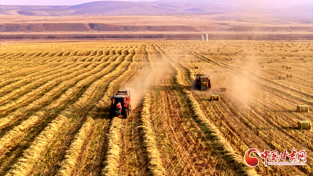 11月11日,甘肅山丹馬場的10萬畝燕麥草進入打包高峰期,田野上呈現(xiàn)出一派繁忙而有序的景象。放眼田間,大型農用機械來回穿梭,將燕麥草迅速壓縮、打包,一個個草捆整齊排列。與此同時,滿載草捆的運輸車在田間小道上來回奔波,將成品送往倉庫和銷售地。