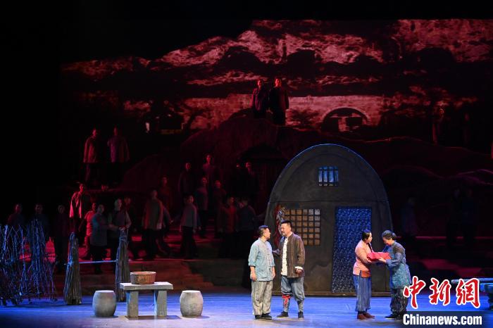 11月28日晚,甘肅省歌劇院在位于蘭州市的黃河劇院舉行“薪火相傳85年”院慶系列演出活動(dòng),集中展示85年來本土民族歌劇創(chuàng)作的豐碩成果。圖為甘肅省歌劇院原創(chuàng)民族歌劇《呼兒嘿喲》演出現(xiàn)場(chǎng)。中新社記者 九美旦增 攝