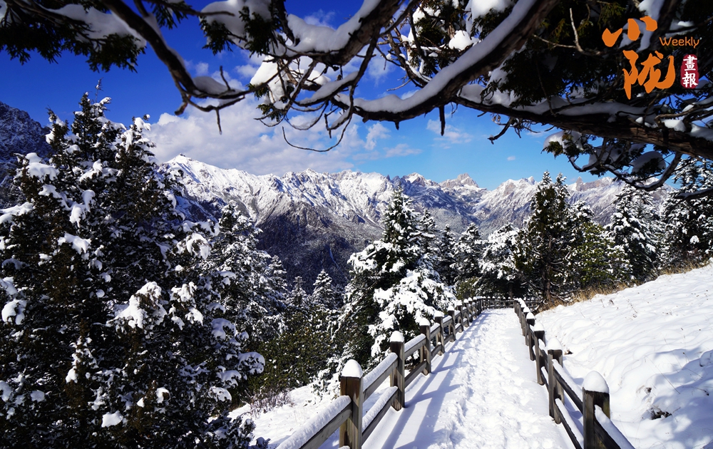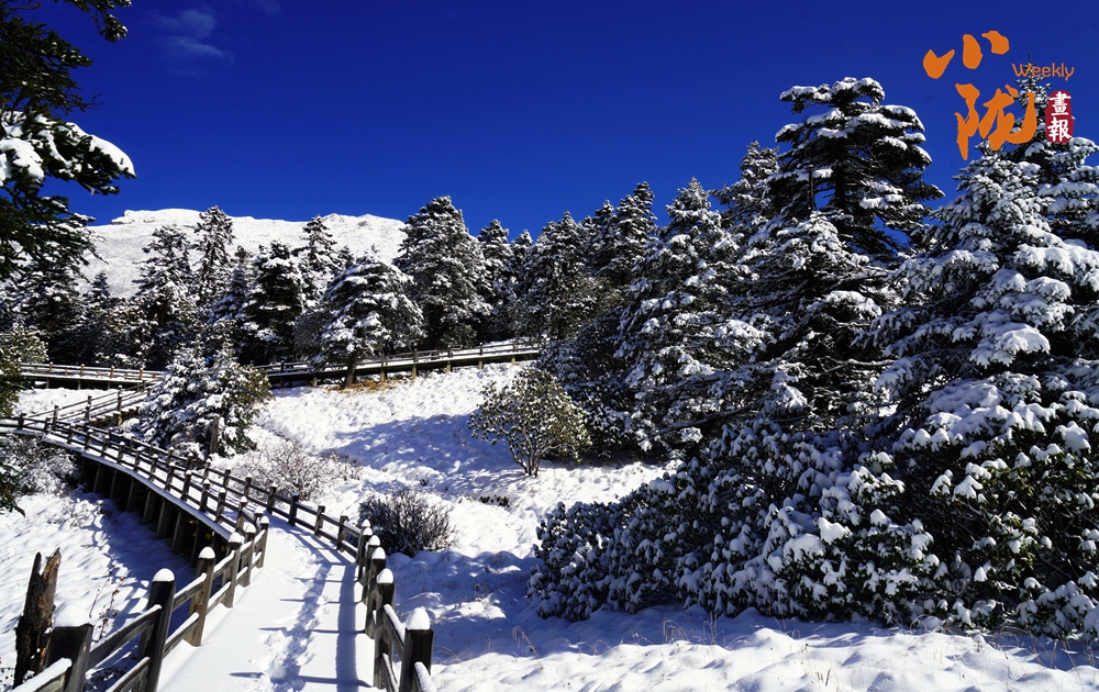 厚厚的雪層堆在樹枝上、鋪在棧道上,宛如一片潔白的海洋,別有一番風味。
