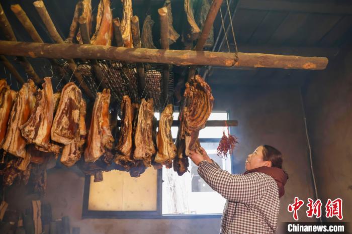 圖為貴州施秉云臺(tái)村一村民在查看臘肉熏制情況。磨桂賓 攝