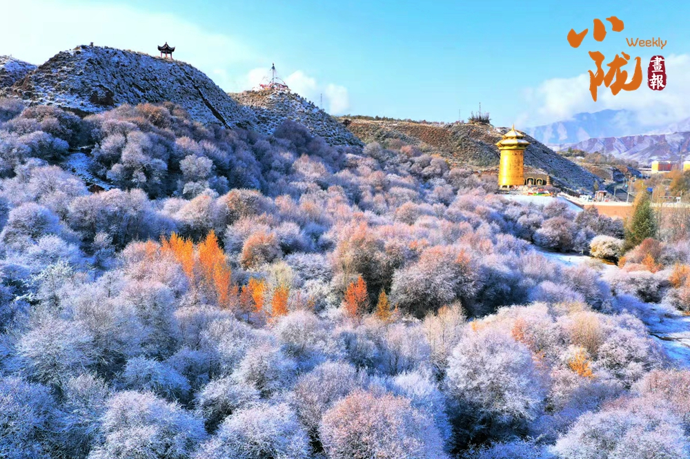 祁連山下,被譽(yù)為“空中草原”的康樂草原段披上了銀裝,皓然一色,如詩如畫。