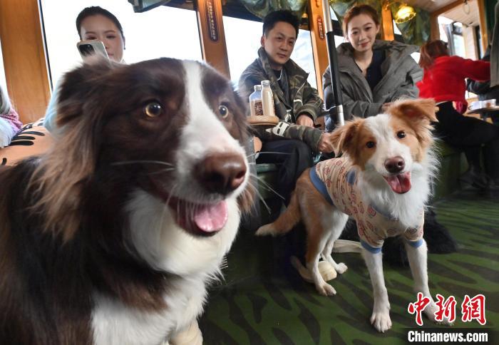 3月16日,吉林長春,寵物們在車廂內(nèi)親密互動。中新社記者 張瑤 攝