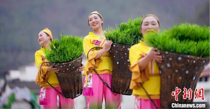 依托黎壩鎮(zhèn)層疊梯田的天然弧度與蒼翠山谷的立體聲場,該劇將鎮(zhèn)巴民歌、陜南民俗等非遺元素融入山水實(shí)景。春之序曲《山歌迎賓》中,油菜花海間百人山歌陣,以原生態(tài)多聲部民歌編織迎賓盛景;夏之華章《綠的交響》里,非遺薅草鑼鼓與現(xiàn)代音樂碰撞出農(nóng)耕文明的力與美;秋之禮贊《金的節(jié)奏》在陽光下呈現(xiàn)打連枷聲浪與稻浪共舞的豐收奇景;冬之情書《紅的濃情》則通過圍爐陜南說唱,在吊爐光影間訴說巴山兒女的熾熱情懷。