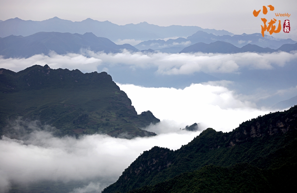 大雨過(guò)后,波瀾壯闊的云海層層疊疊,猶如萬(wàn)馬奔騰,時(shí)而風(fēng)平浪靜,浩如煙海;時(shí)而沒(méi)過(guò)山間,猶如涌動(dòng)的潮水;時(shí)而悄悄褪去,猶如飄動(dòng)的面紗,宛若人間仙境。