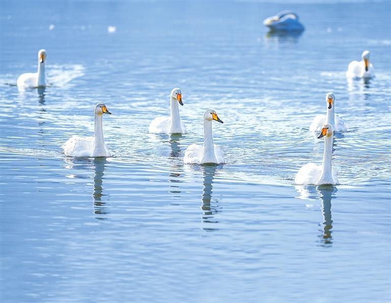 蘭州三江口濕地的冰封河畔上,大天鵝用喙基布滿冰霜的橙喙鑿開生存通道。這里是目前野生天鵝在蘭州的唯一越冬所,為冬日黃河增添了一份靈動和生機。這些北方來客的羽毛并非純白,頸部沾染鹽霜草漬后形成獨特的顏色與紋路,像是歲月在它們身上留下的印記。當地組織了巡護,并有專人定期投飼。