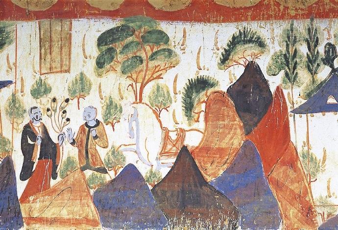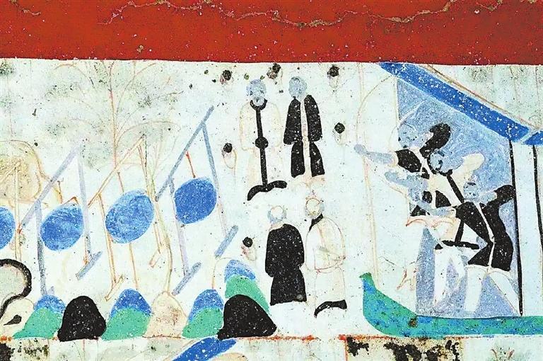 在敦煌壁畫中有關(guān)對弈的內(nèi)容較多。在莫高窟第454窟、第7窟壁畫中都有“弈棋圖”。兩幅圖的畫面有不少類似的地方:一是畫師較為突出棋盤的位置,兩幅壁畫中的棋盤都居中且形制相對巨大;二是畫面上的人物均為三人,兩人對弈,一人觀戰(zhàn),“觀棋不語真君子”;三是對弈者身后的景色都是天朗氣清、遠山含黛。據(jù)說,一天,北宋大文豪蘇東坡與摯友黃庭堅正在松樹底下弈棋。一陣風(fēng)吹來,松果掉進棋盤。蘇東坡隨即吟道:“松下圍棋,松子每隨棋子落。”黃庭堅馬上回答道:“柳邊垂釣,柳絲常伴釣絲懸。”雅趣十足。其實,棋局里的一動一靜、一招一式無不需要謹(jǐn)小慎微、穩(wěn)扎穩(wěn)打。而對弈時的當(dāng)斷則斷、示假隱真、有效合作等戰(zhàn)術(shù)不僅是對弈的智慧,也是人生的哲理吧。