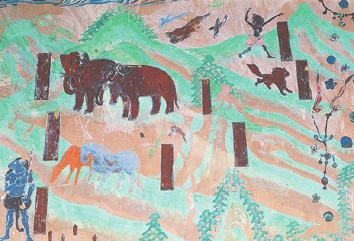 東漢應(yīng)劭在《風(fēng)俗通義·祀典》中寫道:“臘者,獵也,言田獵取獸以祭祀先祖也?;蛟唬?lsquo;臘者’接也,新故交接,故大祭以報功也。”意思是說一年中最后一個月是古人用來狩獵的月份,而狩獵所獲的獵物會被風(fēng)干做成臘肉來祭祀祖先。這個月也被叫作“獵月”或是“臘月”。據(jù)《禮記·月令》記載,在秋季的最后一個月舉行田獵,借此機會教民戰(zhàn)陣,練習(xí)五種兵器的使用,并頒布乘馬的政令。獵畢,命令主管祭祀的官員,用獵獲的鳥獸祭祀四方之神。在莫高窟第249窟壁畫中有一幅“行獵圖”:畫面上都是些體形巨大的動物,有體態(tài)矯健的猛虎、疾馳駿逸的鹿群等。還有在奔馳的駿馬上拈弓搭箭窮追不舍的獵人、在飛奔的駿馬上淡定轉(zhuǎn)身從容射虎的獵人。整個畫面既緊張又靜謐美好,使人不由得對畫師精湛的技藝心悅誠服。