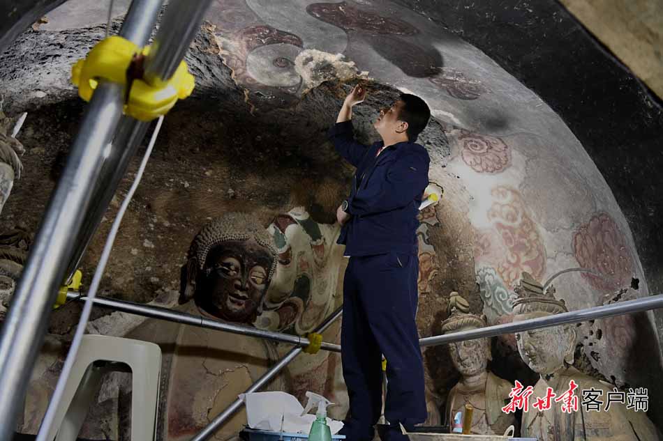 石窟外的時(shí)間流過千年,加之地處多雨林區(qū),文物保護(hù)變得極為不易,塑像和壁畫容易出現(xiàn)空鼓、開裂、脫色等病害。為保護(hù)好麥積山石窟,他們堅(jiān)守在山野之間,與寂靜洞窟為伴,不斷更新文物保護(hù)方式,守護(hù)著這些珍貴的歷史文化瑰寶。