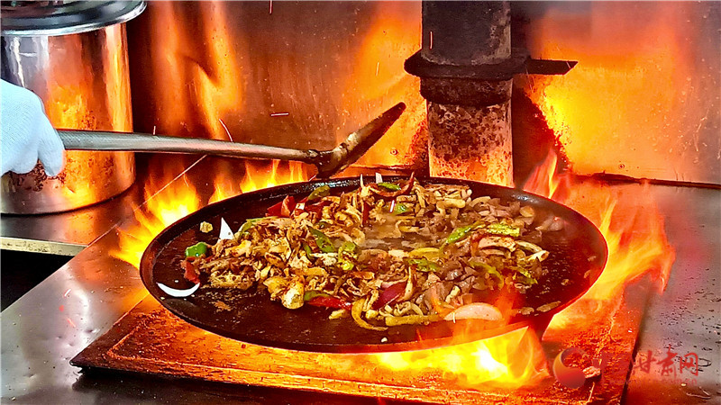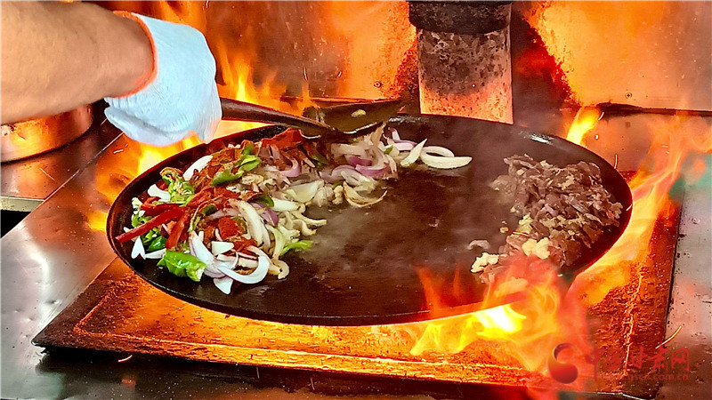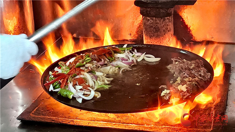 而隨著山丹炒撥拉名氣越來越大,這款圍爐而坐的美食成為越來越多游客的心頭好。王金秀說,以前她們擺地攤賣,雖然條件艱難,但是食客從來不挑剔?,F(xiàn)在時代進(jìn)步了,她也有了自己的示范店,在寬敞明亮的新店,變的是環(huán)境,不變的依然是滋啦冒油的熱情,和朋友圍坐的愜意。對于這種用餐氛圍感拉滿的美食,作為傳承人他們也非常在乎食客的體驗感,所以炒制過程全程開放,讓食客看著大火淬煉的美食一步步成型。