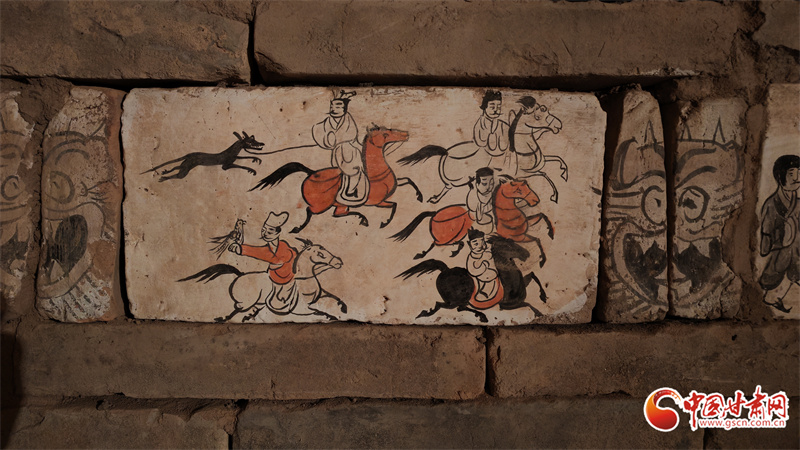 高臺縣魏晉壁畫墓,位于駱駝城東南5公里處的戈壁臺地,該墓曾兩次被盜,90年代后期由甘肅省文物考古研究所與高臺縣博物館實(shí)施搶救性清理。其中,100多塊彩繪畫像磚成為學(xué)界焦點(diǎn)。