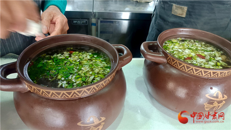 “選材不能將就,三年以上的羯羊,肉質(zhì)才夠緊實;配菜必用山丹野生地耳、發(fā)菜,這是罐罐席的魂。”凌晨五點,王永德已穿梭在農(nóng)貿(mào)市場,指尖劃過羊肉紋理,便能辨出新鮮與否。“緊火煮肉,慢火煨湯,火候差一分,味道就薄一寸。”王永德從吊湯、炒糖色到下料煨香,八道工序環(huán)環(huán)相扣,八小時文火慢熬,方得一罐琥珀色的濃湯。