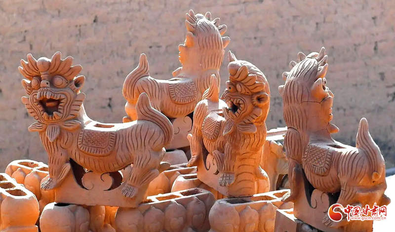 甘谷脊獸的傳承,是刻在家族基因里的。清光緒年間,永安村人張海以出神入化的脊獸捏制技藝聞名,人稱“張大獸”。他將驅(qū)邪納福的祈愿、善惡有報的傳說揉進黃土,讓冰冷的屋脊有了溫度。
