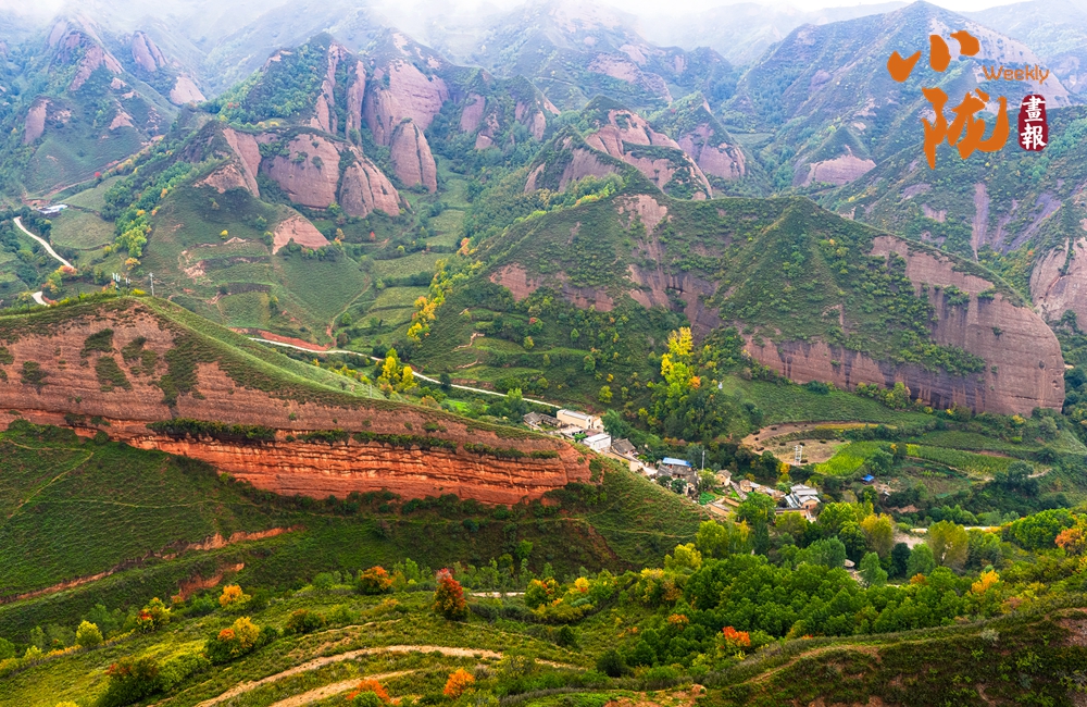 遠(yuǎn)遠(yuǎn)望去,山谷間、山巖上,一簇簇、一片片墨綠色草叢,將丹霞的紅、初冬的彩、山體的褐輕輕暈染,構(gòu)成一幅美麗的冬日美景。